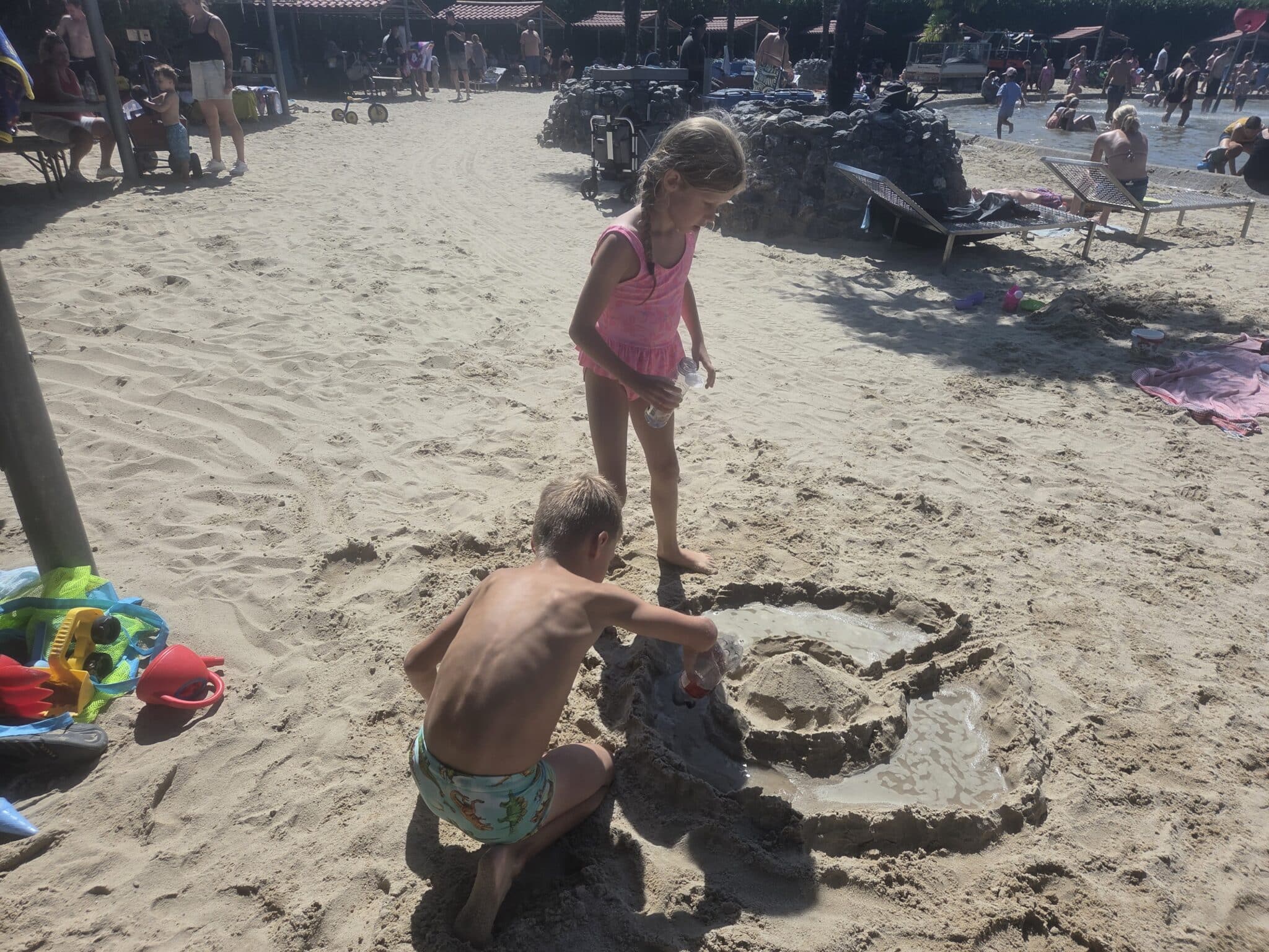 We hebben een tijdje bij Zuidzee gezeten. Dit is een “zwembad” van ongeveer 30-40 cm diep. Er zijn verschillende glijbanen waar kinderen lekker vanaf kunnen roetsjen. Ook spelen met water en zand behoort tot de opties.