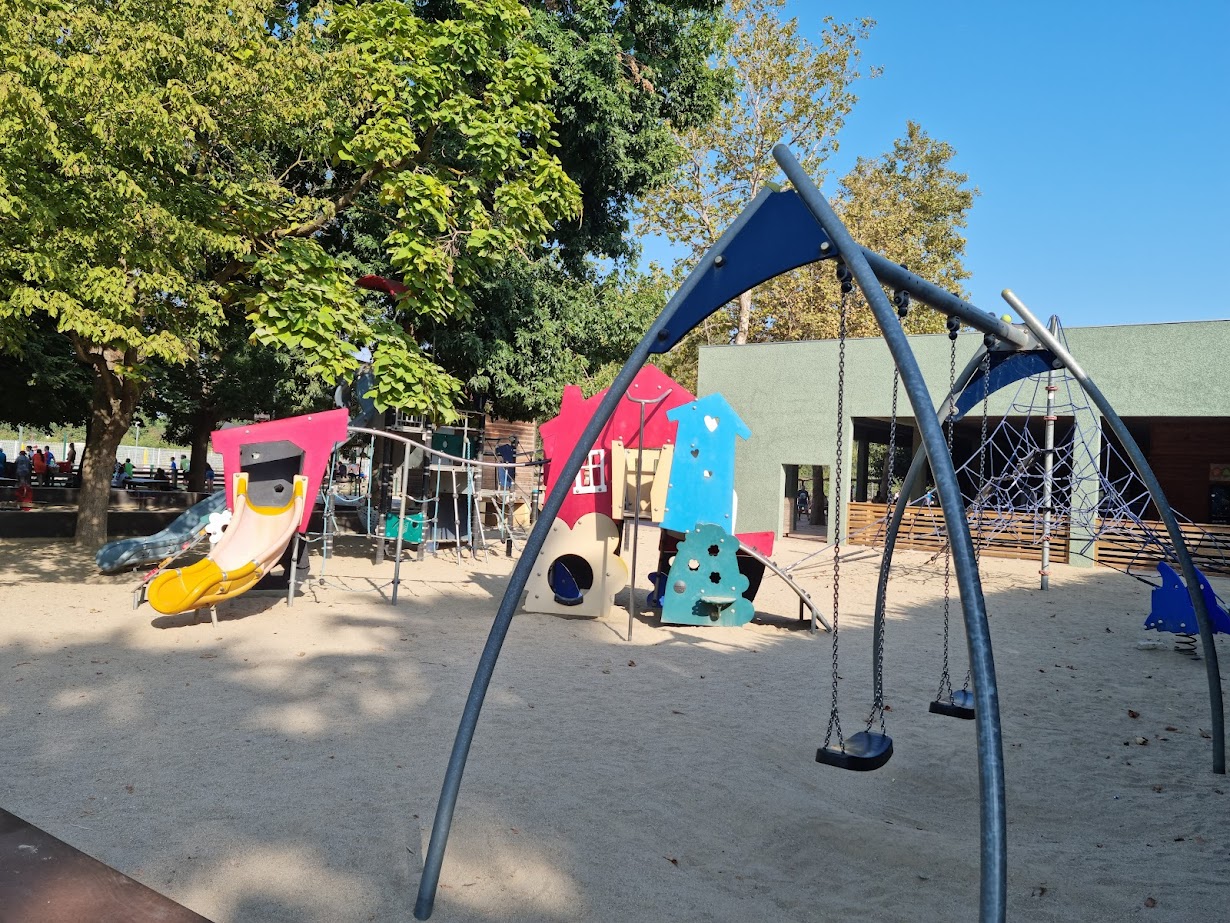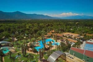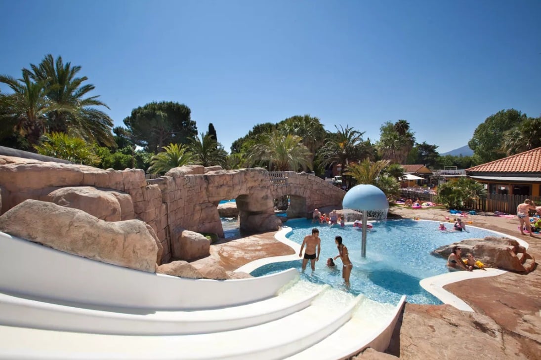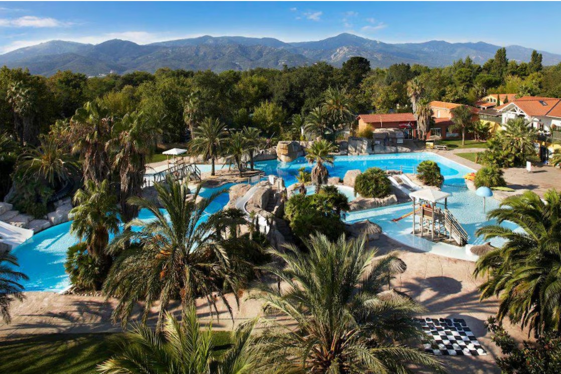 Er zijn meerdere zwembaden, lange glijbanen, een waterval, een overdekt gedeelte met speeltoestellen en er is een wellness centrum. De omgeving rond het zwembad ziet er prachtig uit. Er zijn rotsen en sierpalmen waardoor je echt het vakantiegevoel krijgt. Bij het zwembadcomplex is kunstgras gelegen. De ligweide is zo’n 1200m2 groot.