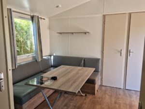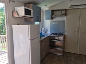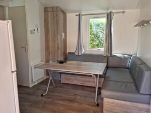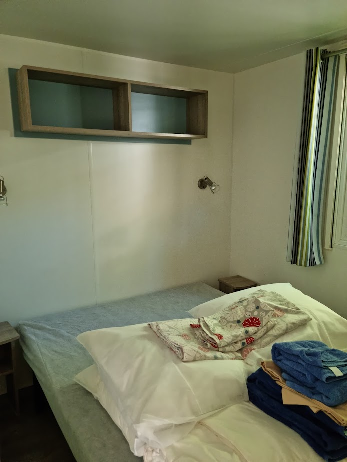 De stacaravan is prima. We hebben 3 slaapkamers, 1 wc en een douche. Er hangt airco zodat we lekker koel kunnen slapen. We hadden geen vaatwasser dus moesten wel met de hand afwassen maar dat vind ik dan weer niet zo’n probleem. Het terras is overkapt en daar kun je heerlijk zitten. Ook zijn er ligbedden en een wasrek om je kleding te drogen.