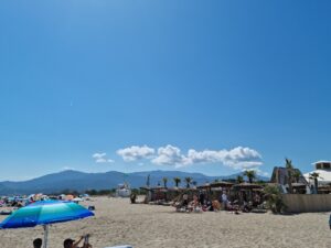 Zo’n 5 minuten rijden van de camping vind je een mooi strand. Je kunt hier gratis parkeren en er is een strandtent aanwezig. Het strand loopt geleidelijk af in zee en de temperatuur is aangenaam. De zee is rustig en ontzettend helder. We balen dat we geen duikbrillen bij hebben. De hele middag genieten we van de zon, de zee en het strand. Ook is het niet heel druk op het strand. We zijn ook nog op een ander strand geweest maar dit strand is wel echt favoriet.